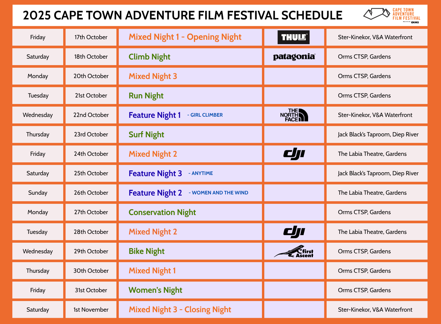 Join us back where it all began at Ster-Kinekor at the V&A Waterfront for a closing night that honours the adventures we've witnessed, the community we've built, and the inspiration we'll carry forward into our own next chapters. This one is not to be missed!